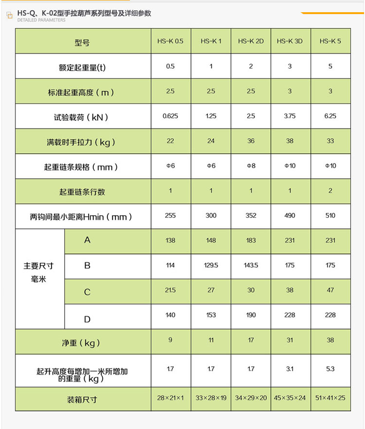 全系列單鏈結構,傳動效率高,手拉力小,使用方便。